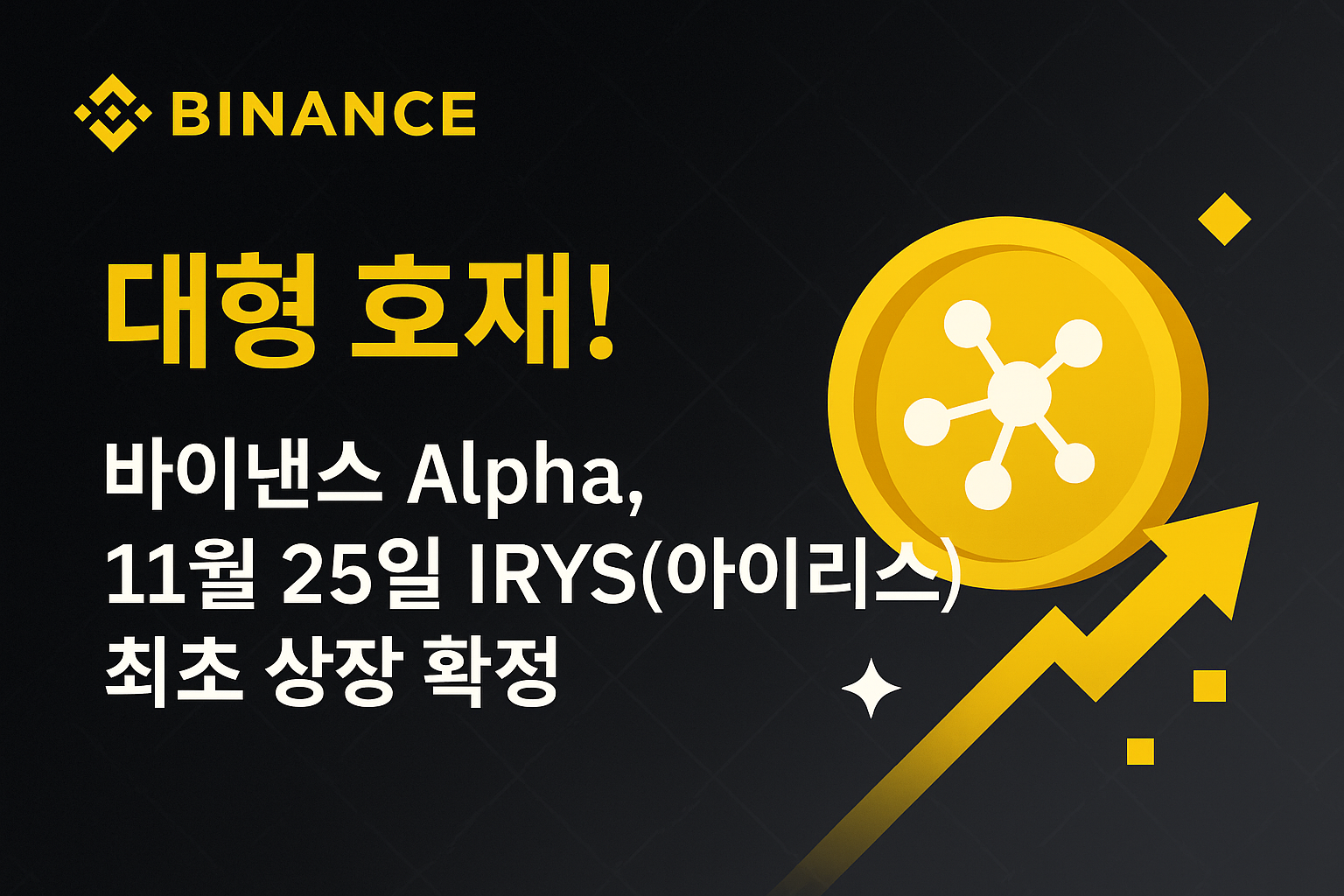 바이낸스 Alpha가 11월 25일, 전 세계에서 가장 먼저 Irys(IRYS)를 상장한다고 공식 발표했습니다.