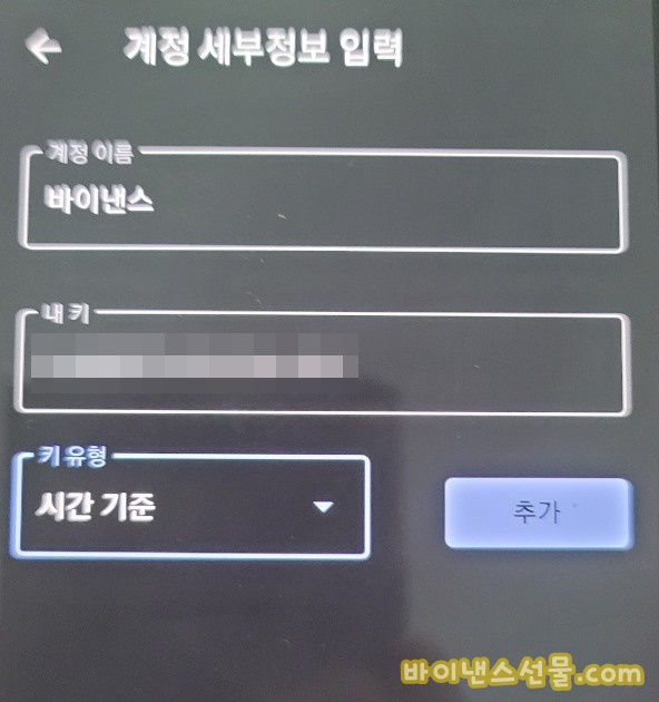 구글OTP 앱에서 BINANCE계정을 추가하고 16자리키를 입력하라고 하네요.