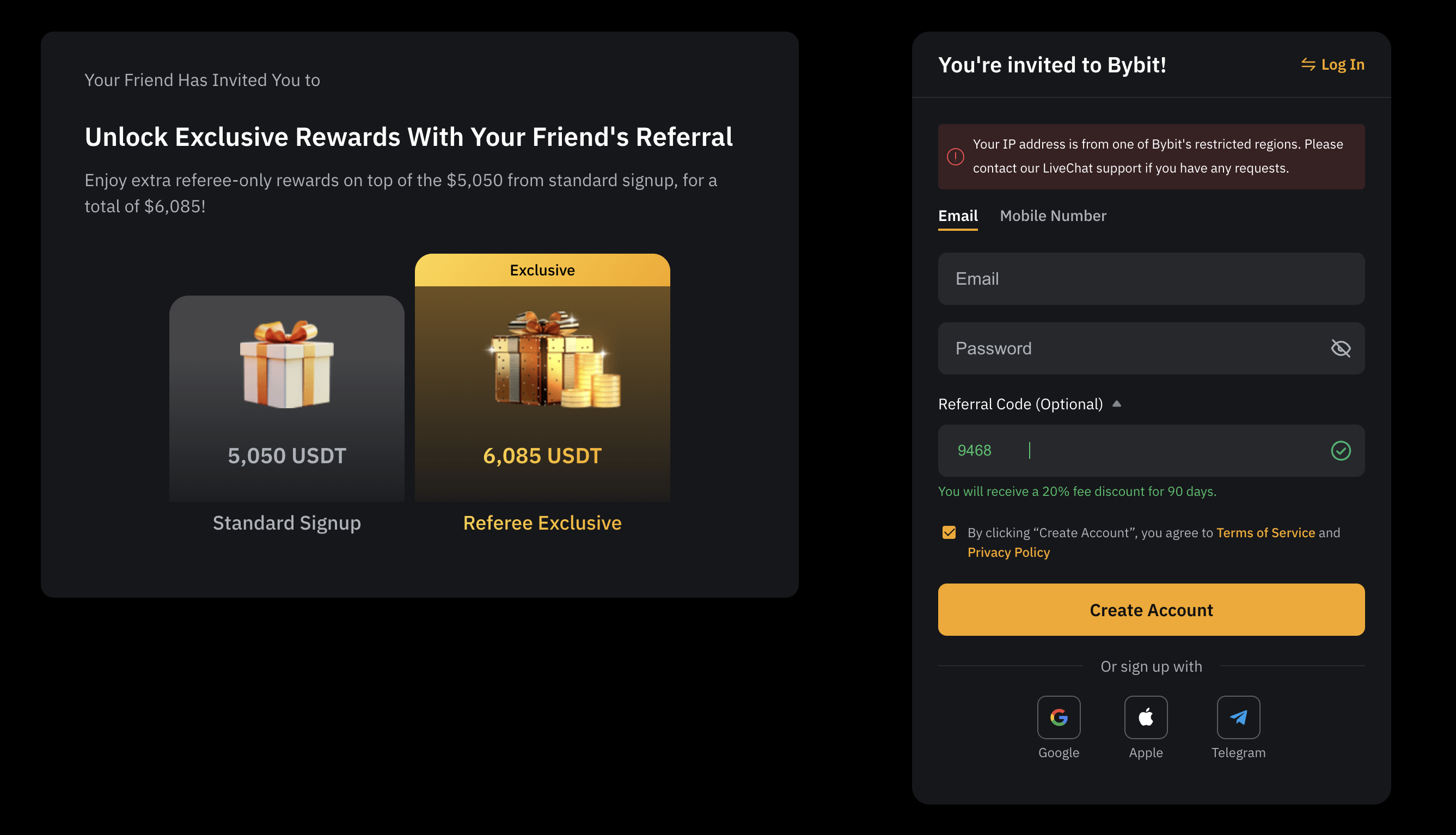 - 초대 코드 “9468” 입력 → 수수료 20% 캐시백 적용