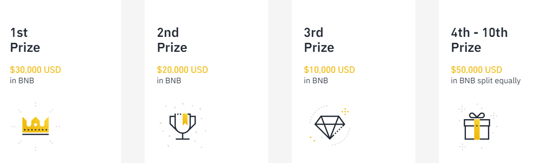 4등~10등 : $50,000 상당의 BNB 1/n 분배
